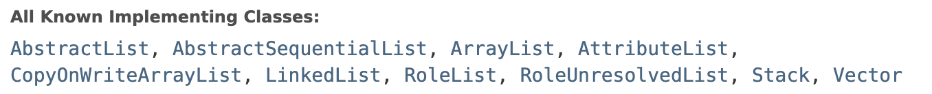- https://docs.oracle.com/javase/8/docs/api/java/util/List.html