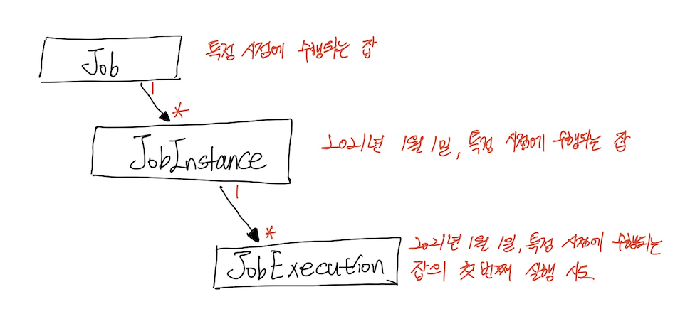 - 스프링 배치의 많은 컴포넌트가 잡의 실행에 서로 상호 작용함