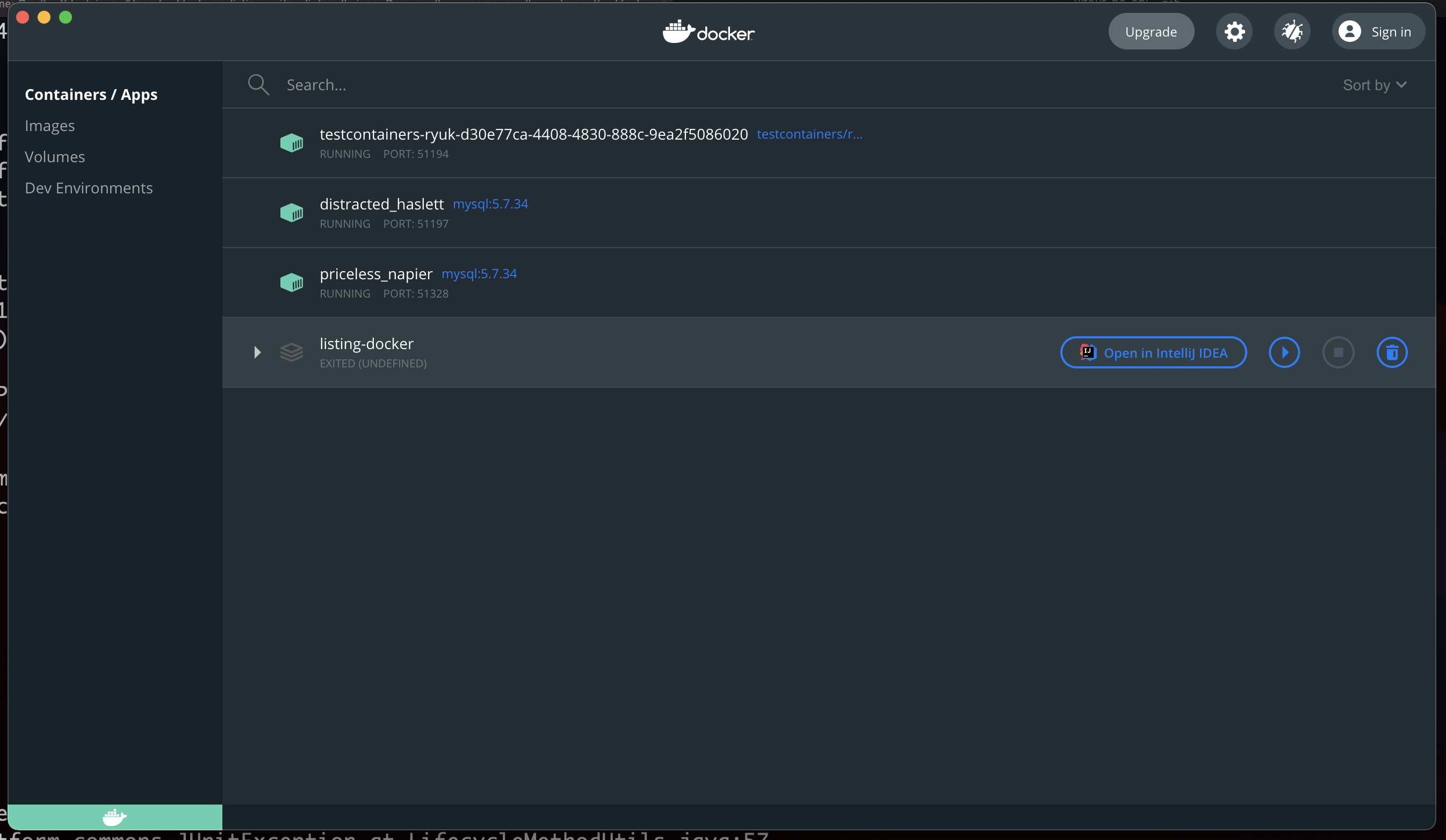 제대로 설치하고 실행해보면, 테스트 수행 시에 도커 컨테이너가 실행되는 것을 볼 수 있다.