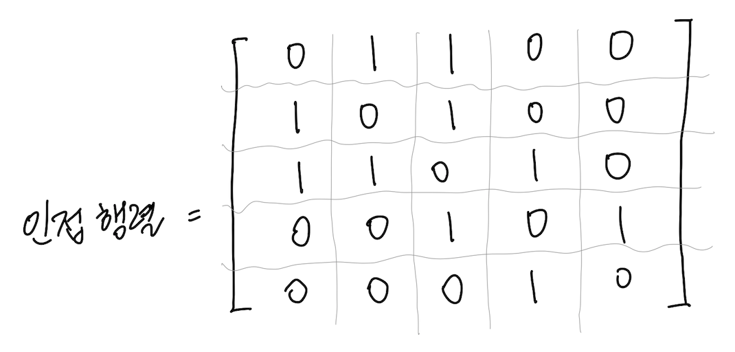 인접 행렬 방식으로 노드와 노드를 연결한 간선을 표현해보자.