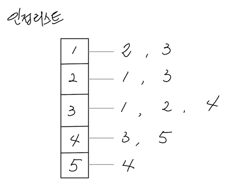 인접 배열 방식과는 다르게 리스트에 들어가는 원소는 연결된 노드의 값이다.